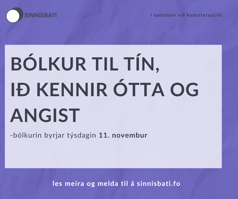 Í bólkunum fáa luttakandi møguleika at hitta onnur, ið eru í líknandi støðu, og kunnu deila tankar, kenslur og royndir við hvønn annan. Luttakararnir fara saman við bólkaleiðara at fáa amboð til at lætta um kenslur av angist og ótta í gerandisdegnum. Amboð innan kunstterapi og mindfulness verða nýtt í bólkinum.